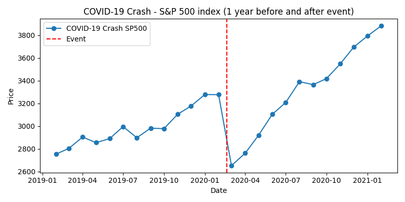 - S&P500: 2019年は好調でしたが、2020年2月から3月にかけて急落し、2600ポイント台まで下落しました。各国の大規模な財政・金融政策により2020年後半から急回復し、2021年初には高値を更新しました。