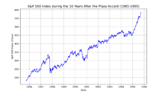 投資 プラザ合意(1985年9月22日)から10年間のS&P500指数の推移 プラザ合意:1985年9月22日に米国、フランス、西ドイツ、日本、英国の5カ国がニューヨークのプラザホテルで円高・ドル安への協調介入を決めた合意です。データの出所:グラフに使用したデータは、Posit社のsp500データセットから取得しまし... 2025.09.27 投資