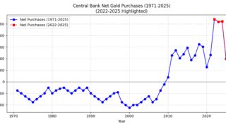 投資 中央銀行の金購入量の推移(1971–2025年) 背景金本位制の終焉と売り越し時代:1971年に米国がドルと金の交換を停止したことで金の貨幣的役割が失われ、主要中央銀行は1970年代から2000年頃まで金準備の売却を進めた。OMFIFはこの期間を「脱貨幣化期(1973–98年)と販売期(1... 2025.09.25 投資